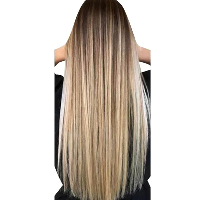 72cm Women Long Straight Wig With Hair Net Blonde Synthetic Hair Wigs Headgear For Daily Wear