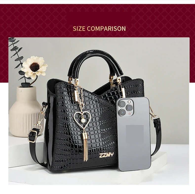 Crocodile Embossed Handbag, Casual Pu Leather ZipperShoulder Bag for Women, Trendy Versatile High-qualityDaily Commuting Bag