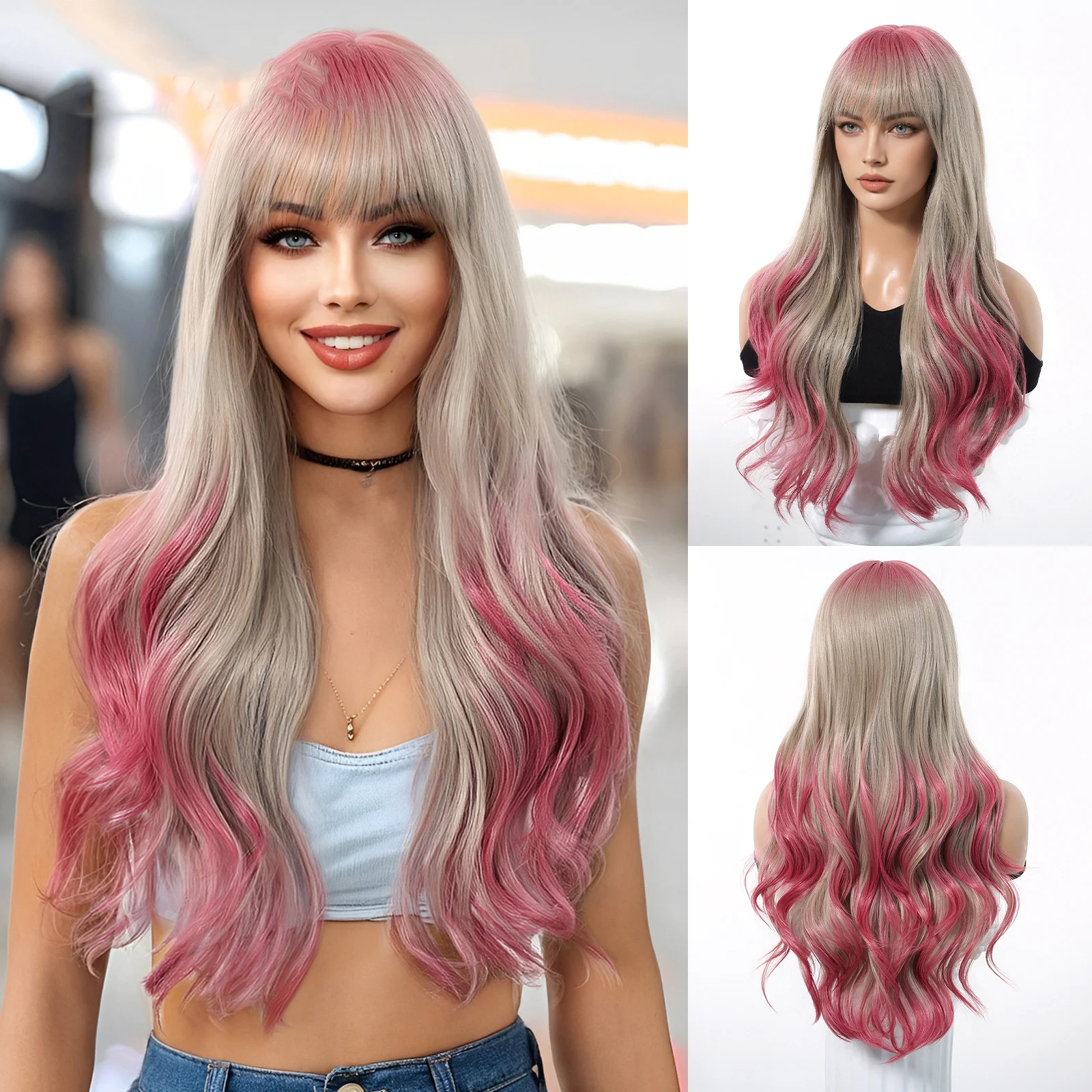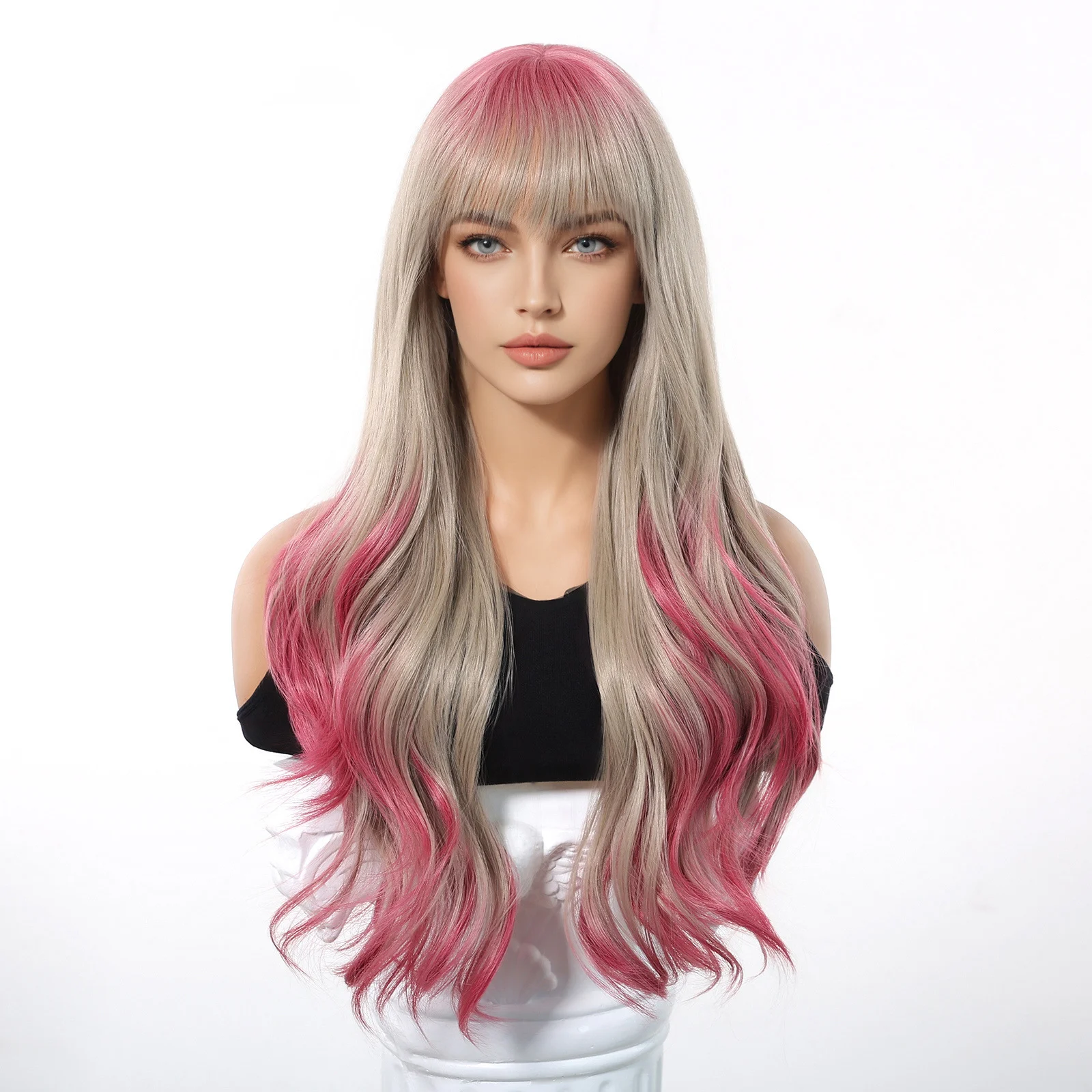 European and American Cosplay Festival Fringe Dragon Fruit Color White Big Waves Long Curly Hair No Lace Wig