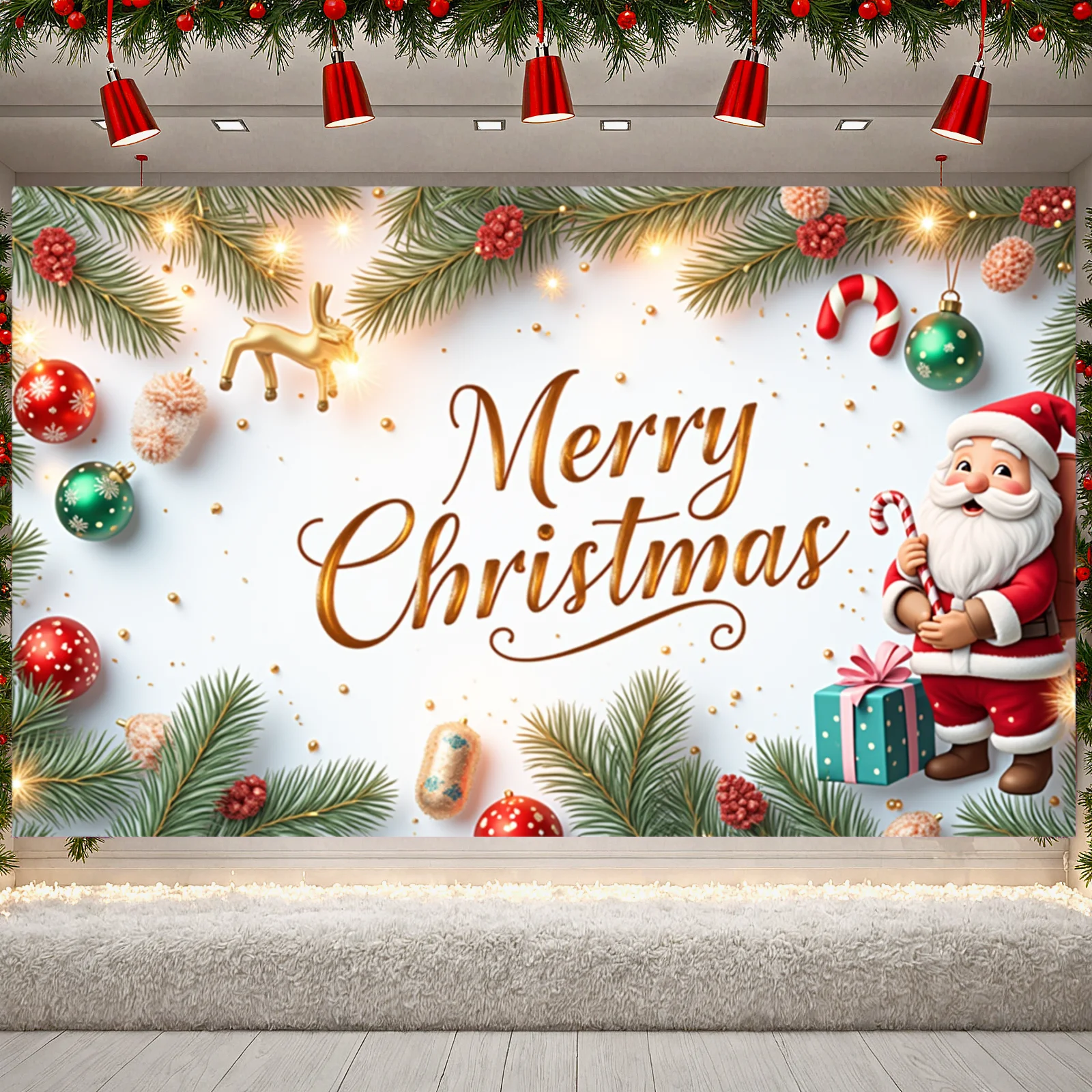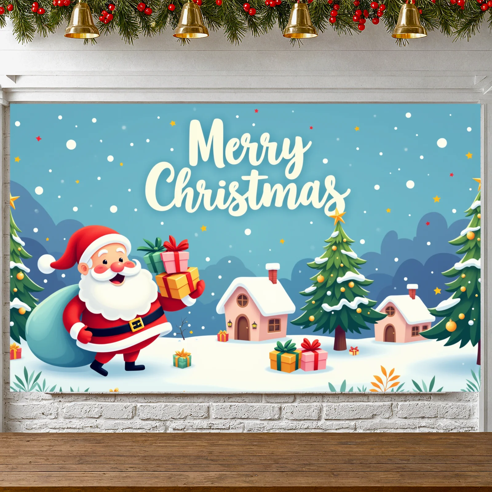 Merry Christmas Santa Decoration Festive Banner Polyester Snowy Scene Winter Holiday for Christmas Party Decor Seasonal Celebrat