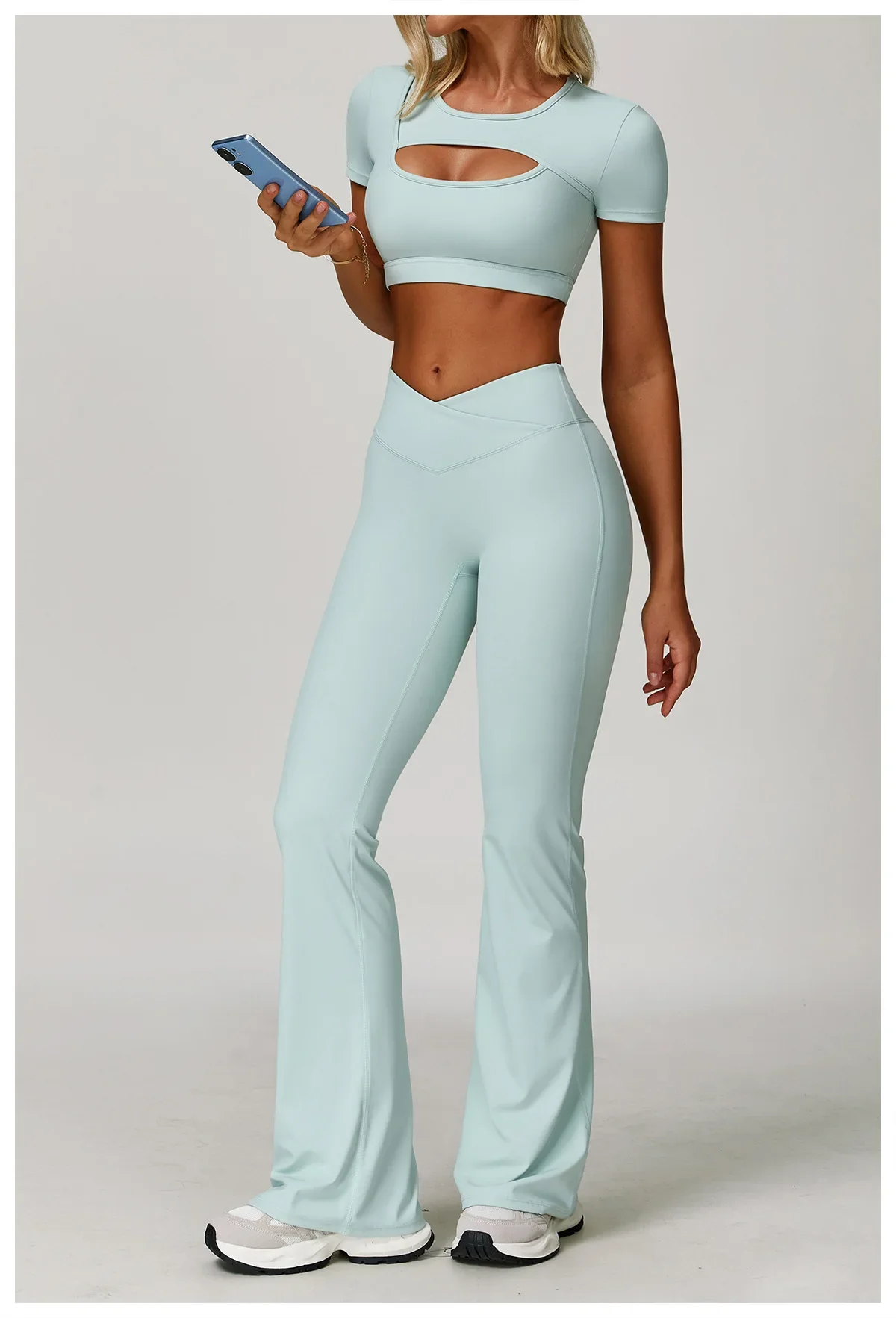 Women's Tight Fitting Sports T-shirt Quick Dry Short Sleeve Gym Tops Hollow Out Yoga T-shirt Running Exercise Fitness Sports Bra